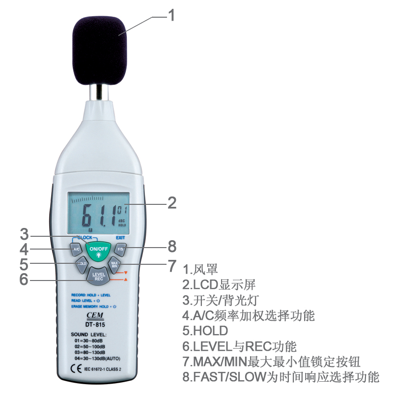 測量范圍:01:30dB~80dB 02:50dB~100dB